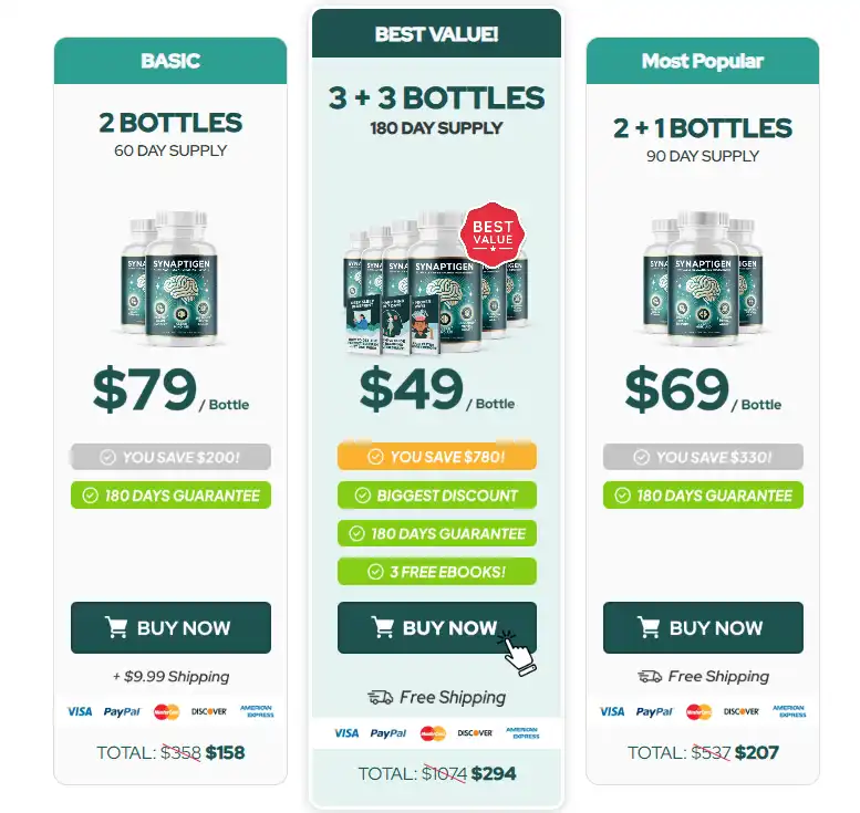 Synaptigen is sold exclusively through its official website. This is important—avoid third-party sites to prevent counterfeit products with incorrect ingredients or lower potency.